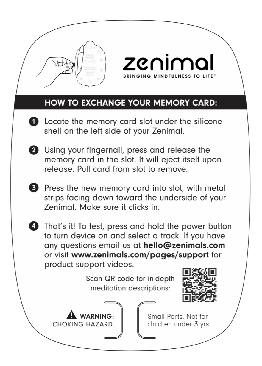 The Orca Collection transforms your Zenimal into a simple meditation timer. Nine soothing music tracks, each a different length from 5 to 45 minutes. Pick how long you want to sit, press the matching button, and the music plays for exactly that long — then gently fades out. That's your signal. No phone, no clock-watching, no interruptions. Scroll down to listen to all the tracks!