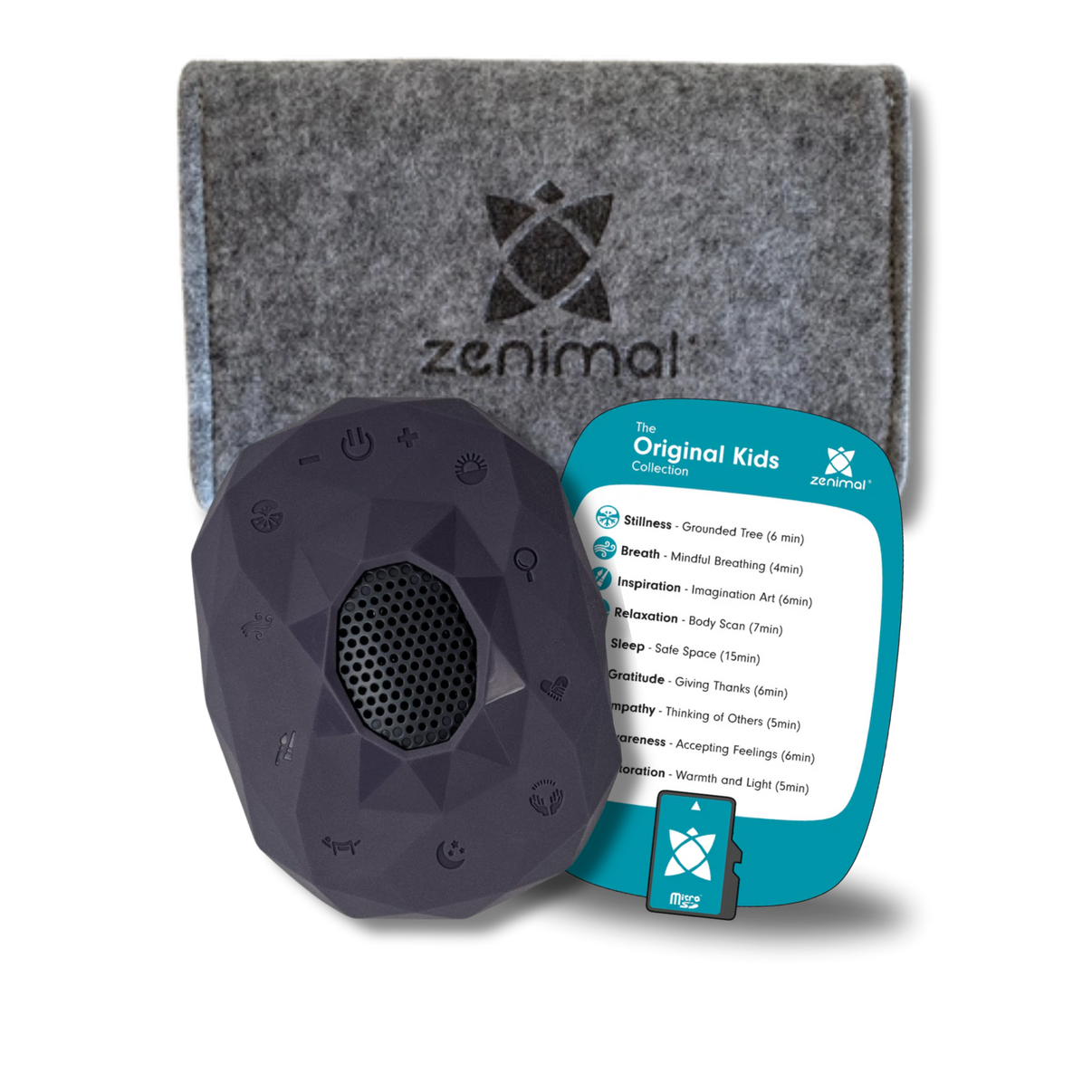 Support emotional growth at every stage with a device that adapts as your child does. This Teen/Adult Zenimal paired with the Kids Collection card offers a mature design while still providing gentle, age-appropriate content for younger listeners. As your child grows, they can easily transition from foundational practices like breath awareness and gratitude to the built-in teen meditations focused on confidence, boundaries, and self-esteem.